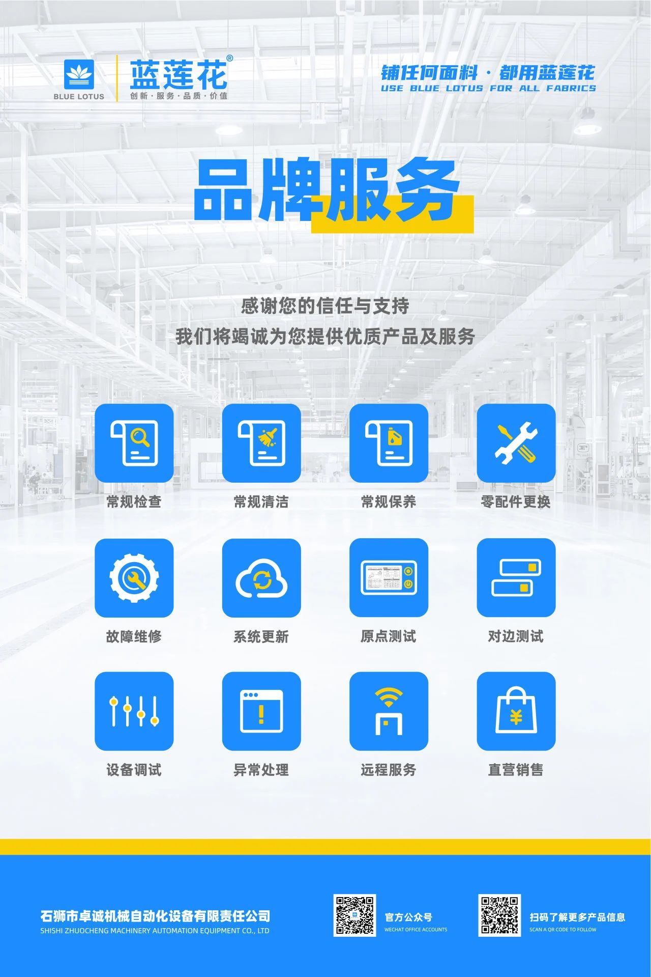 藍(lán)蓮花深耕鋪布機(jī)領(lǐng)域多年,致力“精工智造,賦能未來”。此次門店形象升級(jí),不僅是視覺的統(tǒng)一,更是品牌內(nèi)核的延伸 。